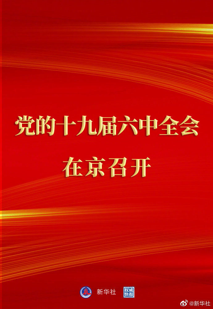 中國共產黨第十九屆中央委員會第六次全體會議在京召開 來源:新華社微博 2021-11-08