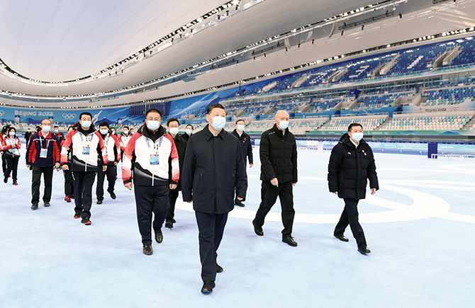 1月4日,習(xí)近平在中共中央政治局委員、北京市委書記蔡奇和市長陳吉寧陪同下,深入體育場館、媒體中心、訓(xùn)練基地等,實地了解籌辦備賽情況。