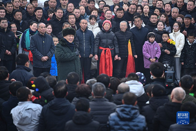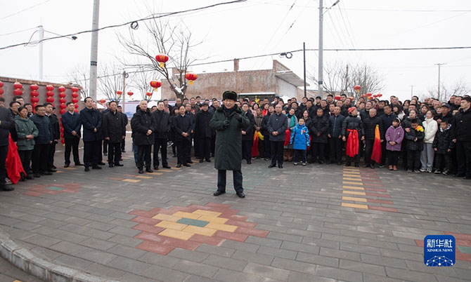 村文化廣場(chǎng)上十分熱鬧,村民們打起威風(fēng)鑼鼓、扭起秧歌歡慶佳節(jié)。看到總書記來了,人們高興地歡呼起來。習(xí)近平對(duì)鄉(xiāng)親們說,我們黨的根本宗旨就是為人民群眾辦好事,為人民群眾幸福生活拼搏、奉獻(xiàn)、服務(wù)。我們?nèi)缙诖蜈A了脫貧攻堅(jiān)戰(zhàn),如期實(shí)現(xiàn)了全面建成小康社會(huì)目標(biāo),現(xiàn)在踏上了全面建設(shè)社會(huì)主義現(xiàn)代化國(guó)家新征程。建設(shè)現(xiàn)代化國(guó)家離不開農(nóng)業(yè)農(nóng)村現(xiàn)代化,要繼續(xù)鞏固脫貧攻堅(jiān)成果,扎實(shí)推進(jìn)鄉(xiāng)村振興,讓群眾生活更上一層樓,在推進(jìn)農(nóng)業(yè)農(nóng)村現(xiàn)代化中越走越有奔頭。