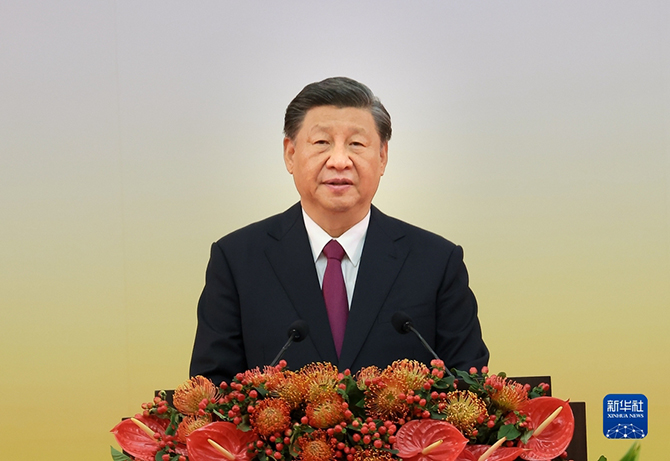 在熱烈的掌聲中,習近平發表了重要講話。他首先向全體香港居民致以誠摯的問候,向新就任的香港特別行政區第六任行政長官李家超和第六屆政府主要官員、行政會議成員表示熱烈的祝賀,向支持“一國兩制”事業、支持香港繁榮穩定的海內外同胞和國際友人表示衷心的感謝。
