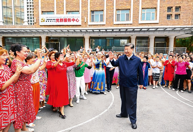 13日上午,習近平來到烏魯木齊市天山區固原巷社區。該社區少數民族居民占95%以上。習近平走進黨群服務中心大廳、愛心之家、舞蹈室、少兒閱覽室,同社區居民親切交流。習近平饒有興致觀看兒童中華優秀傳統文化知識表演,他指出,中華優秀傳統文化教育抓早抓小、久久為功、潛移默化、耳濡目染,有利于夯實傳承中華優秀傳統文化的根基。在維吾爾族居民阿布來提·吐爾遜家中,習近平仔細察看客廳、臥室、廚房等,同一家人圍坐在一起拉家常。習近平強調,民族團結是我國各民族人民的生命線,新疆各民族都是中華民族大家庭不可分割的成員,要格外珍惜安定團結的大好局面,56個民族擰成一股繩,保持定力、腳踏實地,同心協力、踔厲奮發,在黨的領導下為實現第二個百年奮斗目標繼續奮斗。習近平指出,社區工作連著千家萬戶,要充分發揮社區基層黨組織的戰斗堡壘作用,把工作重心下沉,緊貼各族居民所思所想所盼,幫助大家辦好事、辦實事、解難題,促進各族群眾手足相親、守望相助,共建美好家園、共創美好未來。
