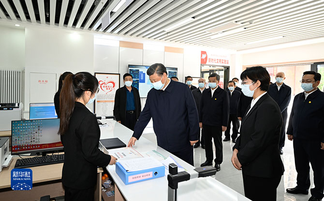 5月10日,中共中央總書(shū)記、國(guó)家主席、中央軍委主席習(xí)近平在河北省雄安新區(qū)考察,并主持召開(kāi)高標(biāo)準(zhǔn)高質(zhì)量推進(jìn)雄安新區(qū)建設(shè)座談會(huì)。這是10日上午,習(xí)近平在容東片區(qū)南文營(yíng)社區(qū)黨群服務(wù)中心考察。(新華社記者 李學(xué)仁 攝)
