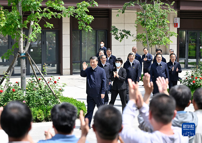 5月10日,中共中央總書(shū)記、國(guó)家主席、中央軍委主席習(xí)近平在河北省雄安新區(qū)考察,并主持召開(kāi)高標(biāo)準(zhǔn)高質(zhì)量推進(jìn)雄安新區(qū)建設(shè)座談會(huì)。這是10日上午,習(xí)近平在容東片區(qū)南文營(yíng)社區(qū)考察時(shí)向社區(qū)居民揮手致意。(新華社記者 殷博古 攝)