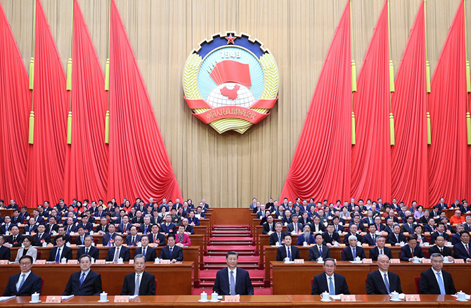 3月4日下午,中國人民政治協商會議第十四屆全國委員會第二次會議在北京人民大會堂開幕。 新華社記者 李賀 攝