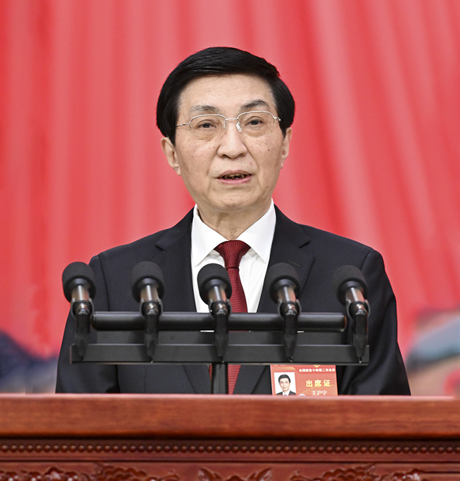 王滬寧代表政協第十四屆全國委員會常務委員會,向大會報告工作。