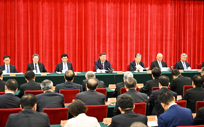 中共中央政治局常委趙樂際、王滬寧、丁薛祥、李希,國家副主席韓正出席座談會,中共中央政治局常委蔡奇主持座談會。
