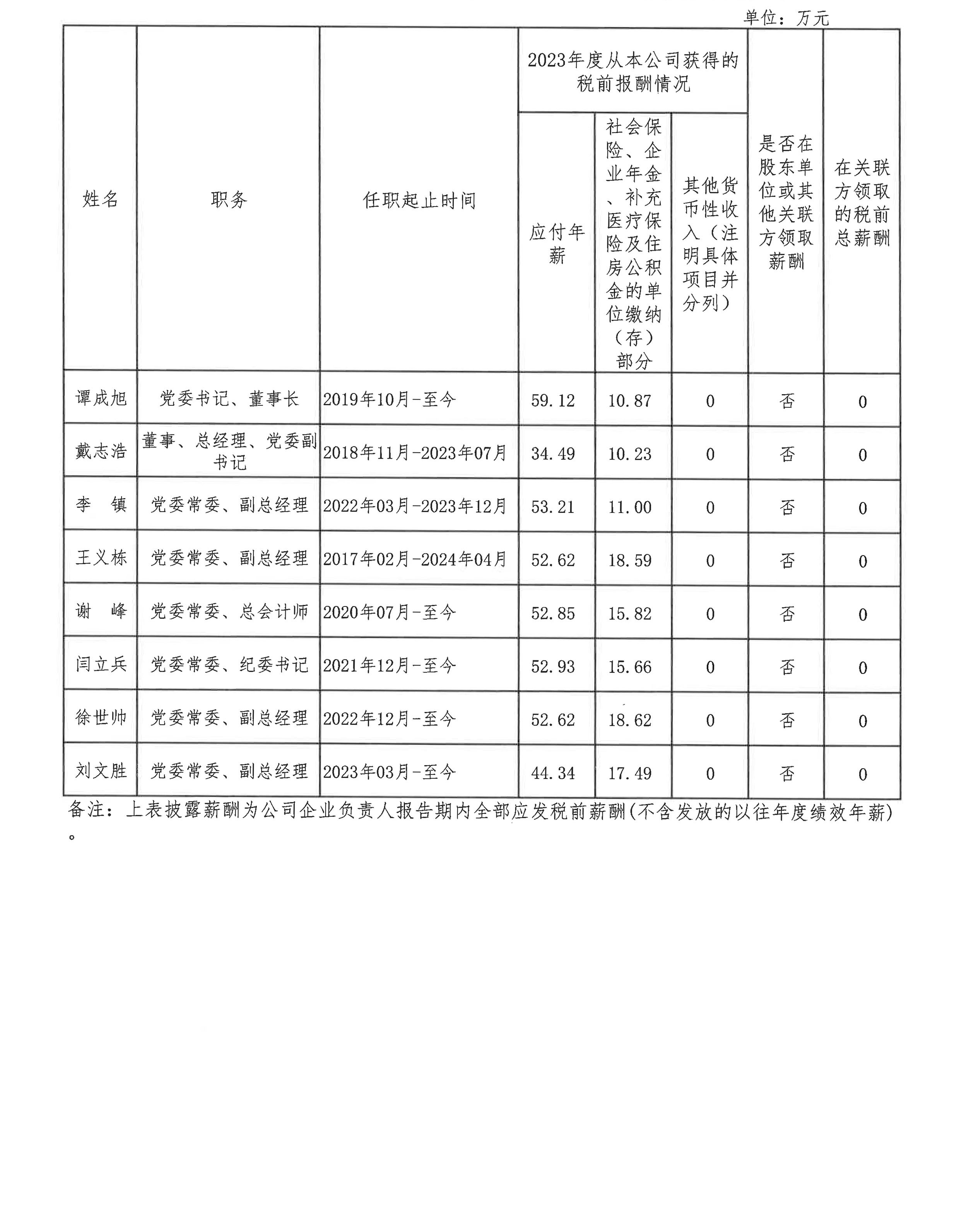 鞍鋼集團有限公司企業負責人2023年度薪酬情況